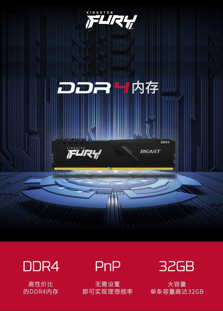“Kingston/金士顿”KF432C16BB/32-SP 内存条 单个装(FURY 32GB DDR4 3200台式机Beast野兽系列骇客神条HX432C16FB3/32/HX432C16FB3/32-SP/HX432C16FB3/32-SPBK)