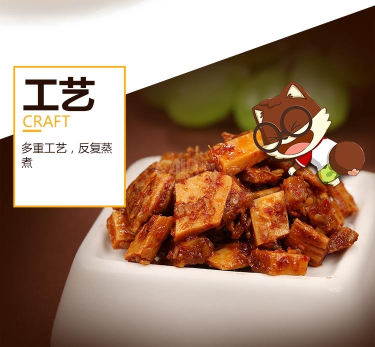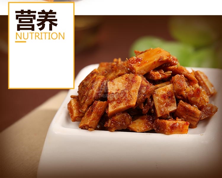配料牛板筋,植物油,白砂糖,食用盐,麦芽糊精,辣椒,芝麻,食品添加剂(谷氨酸钠,5’-呈味核苷酸二钠, D-异抗坏血酸钠,食用香精,柠檬酸,乳酸链球菌素),香辛料,酵母抽提物