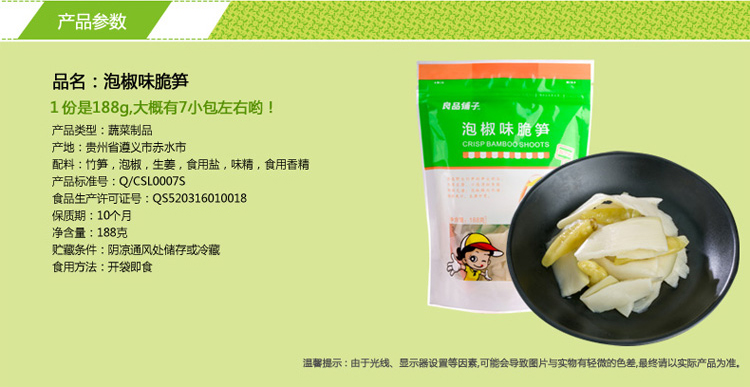 “BESTORE良品铺子”泡椒脆笋 素食小吃 休闲零食 泡椒辣味188g(海洋电脑 0418商城)