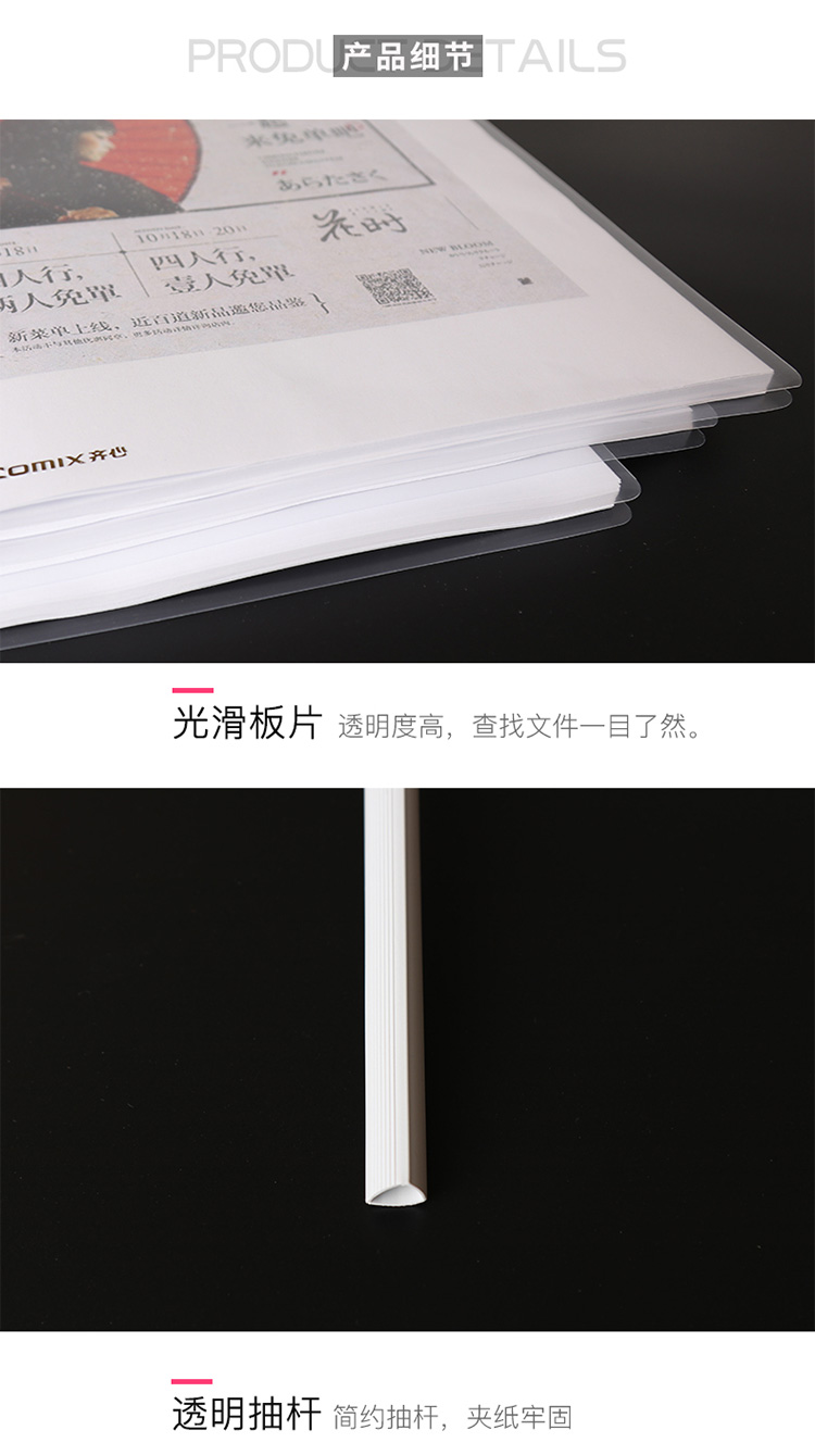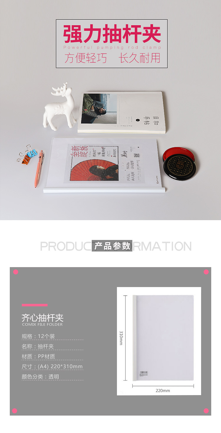 “COMIX齐心”EA10 强夹力抽杆夹/文件夹/报告夹A4 透明 12个装(海洋电脑 0418商城)