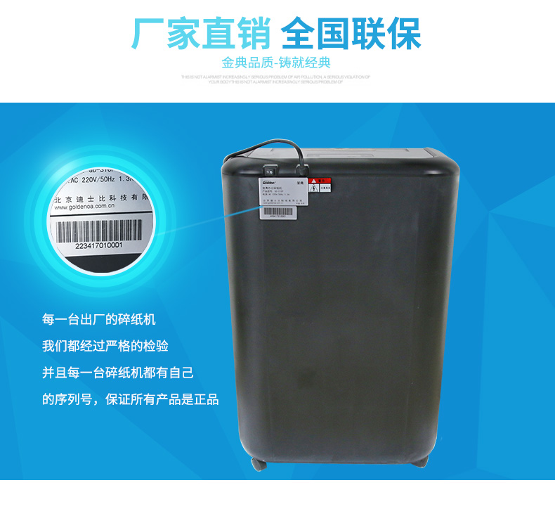 “GOLDEN/金典”GD-310P 高保密碎纸机 单台装(银色国家一级认证)
