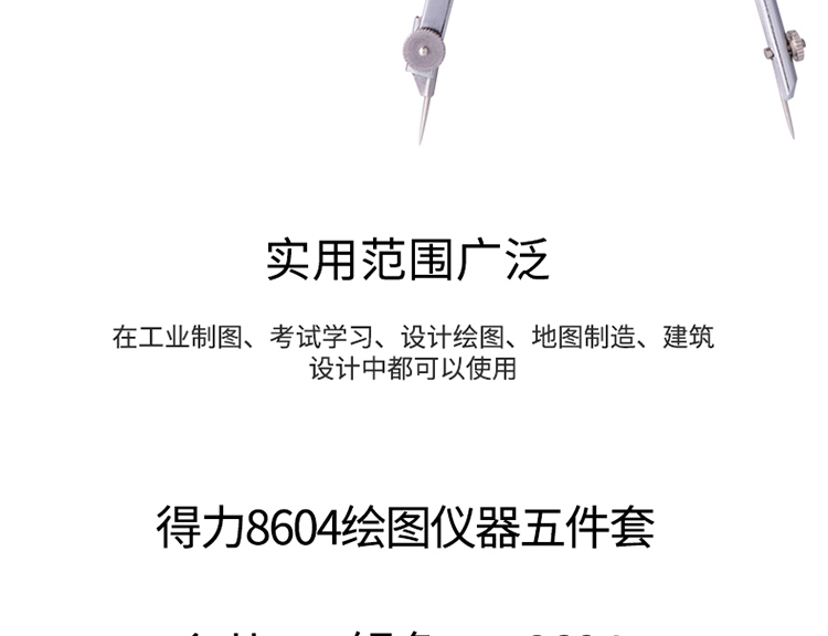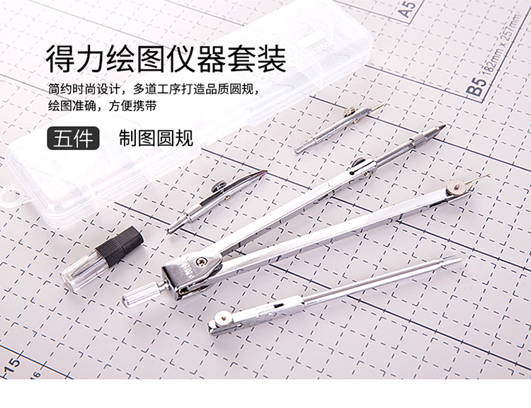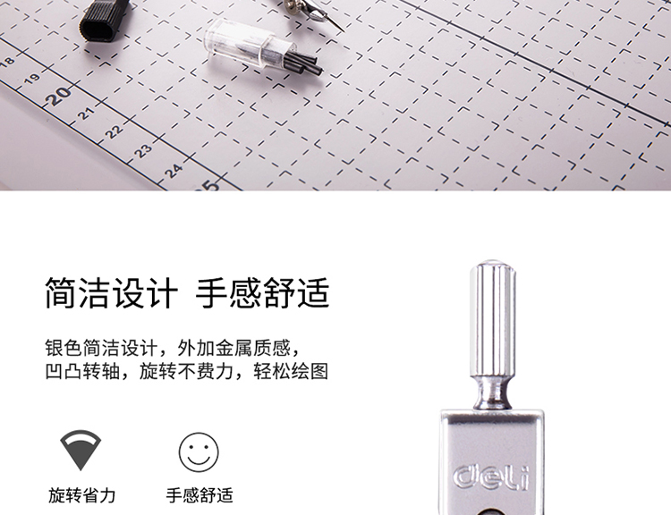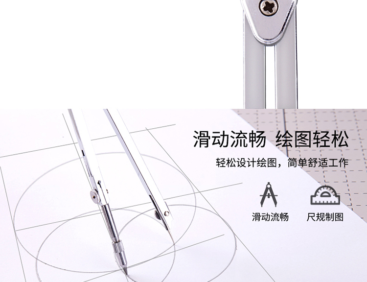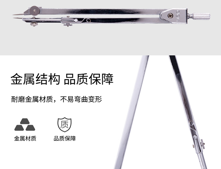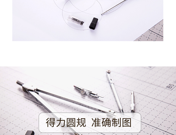 圆规×1、延长杆×1、鸭嘴头×1、铅芯头×1、铅芯×1
