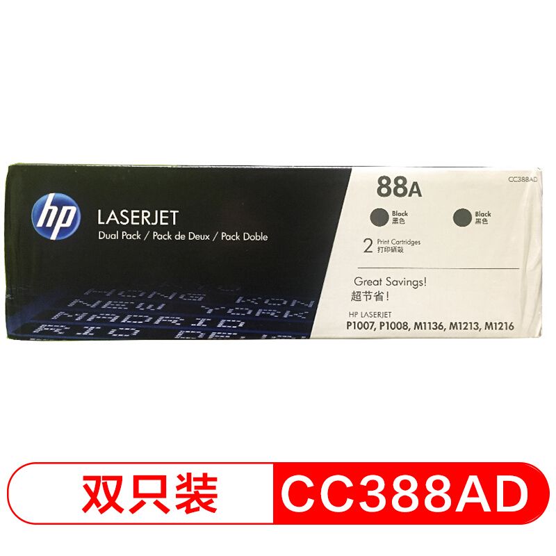 “HP/惠普”88A CC388AD 硒鼓 双支/盒装(黑色双份包装适用1108;1106;M1213;1216;1136;M202;M226;M126;M128系列等 海洋·0418)