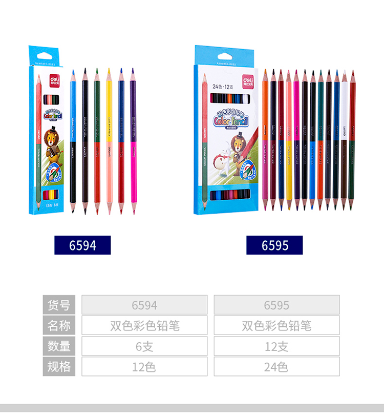 “deli/得力”双头12色彩色铅笔/填色笔/彩铅 6支纸盒装 6594(海洋电脑 0418商城)