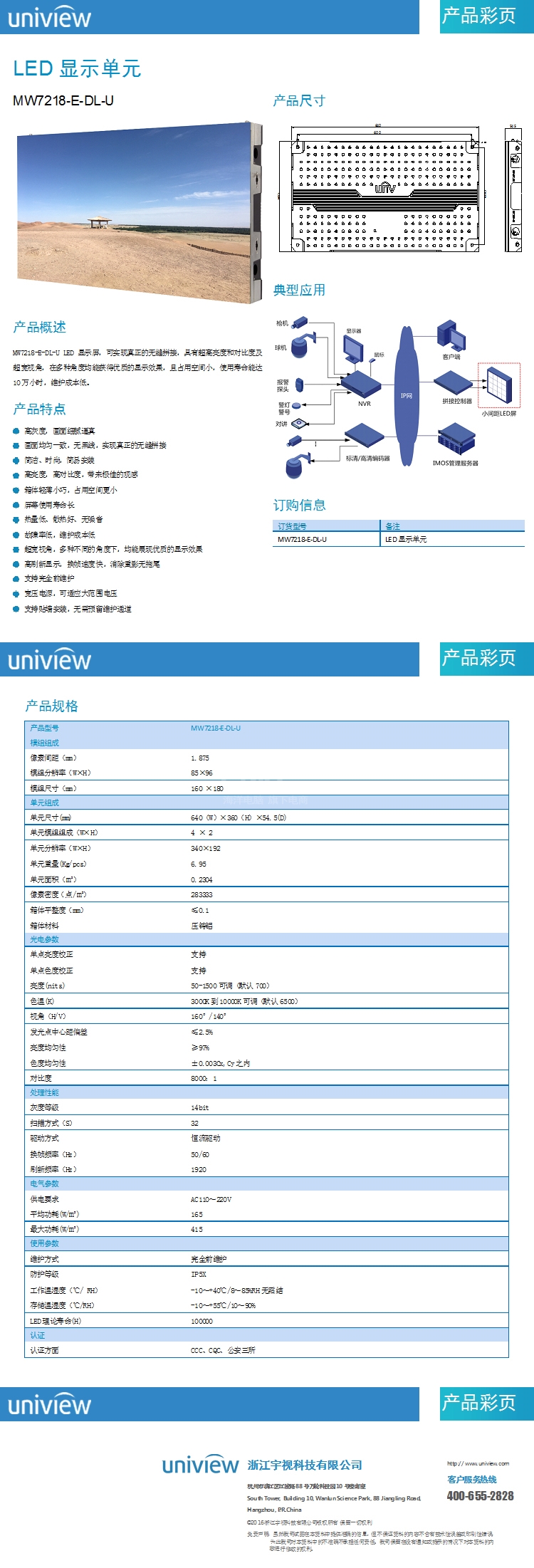 “UNV(uniview)/宇视(宇视科技)”MW7218-E-DL-U P1.8小间距LED显示系统(海洋电脑 0418商城)