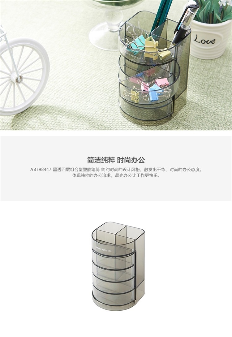 “M&G/晨光”ABT98447 黑透 四层组合型桌面收纳盒(海洋电脑 0418商城)