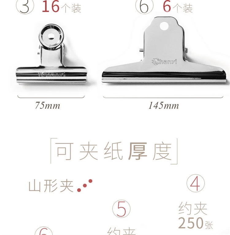 “chanyi/创易”CY-2103 山形铁票夹/票据夹/金属夹子 圆形夹50mm(海洋电脑 0418商城)