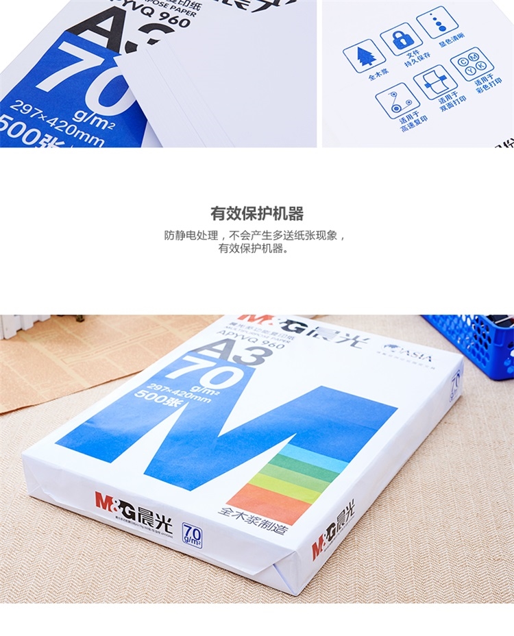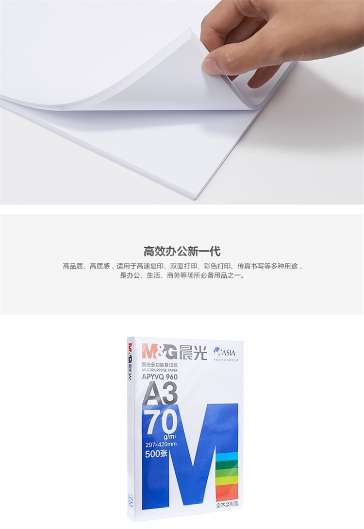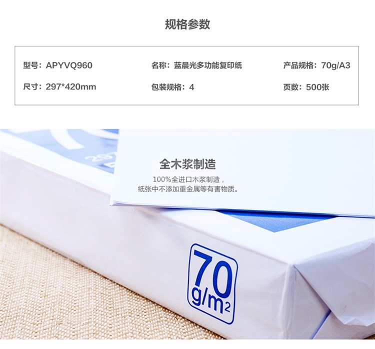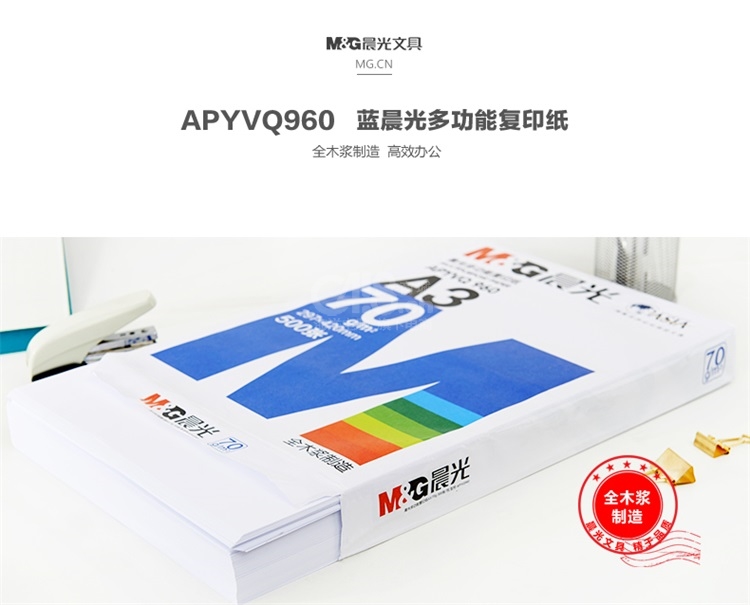 “M&G/晨光”APYVQ 959 多功能复印纸 8包/箱装(蓝色包装办公用纸A4 70g 500页/包APYVQ959)