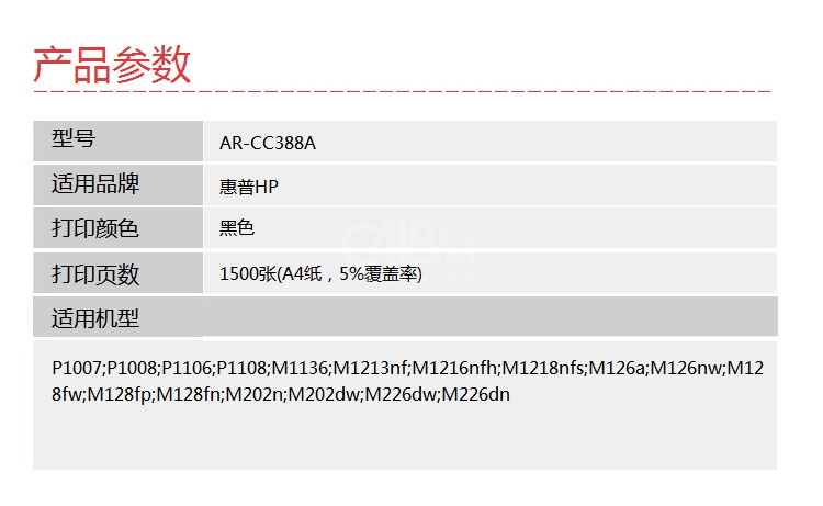 “Anycolor/欣彩”AR-CC388A 专业版 通用硒鼓 单个装(黑色88A适用惠普P1007/P1008/P1106/P1108/M1136/M1213nf/M1216nfh)