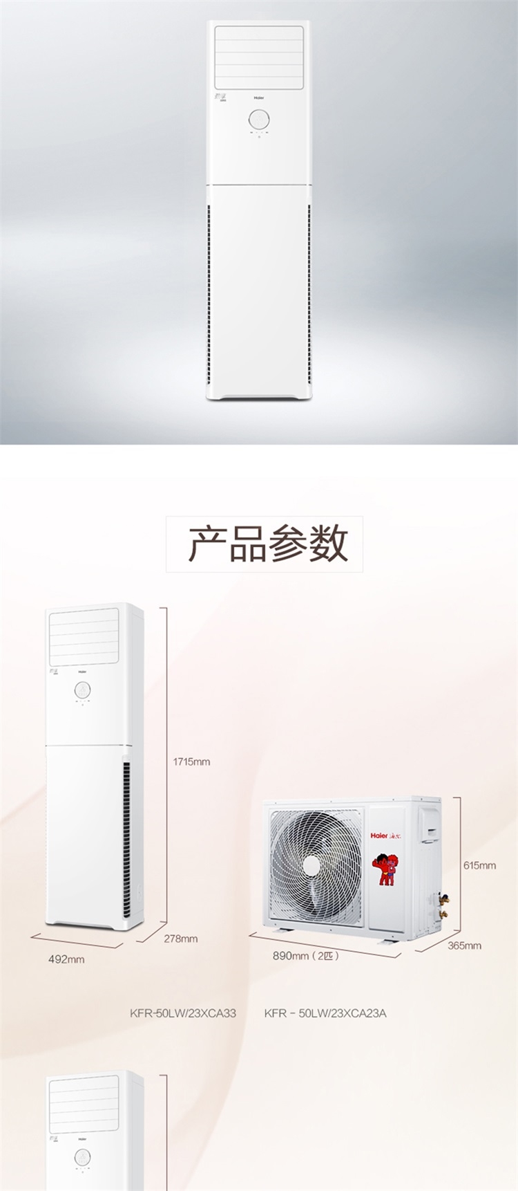 “Haier/海尔”KFR-50LW/23XCA33 空调柜机 单套装(白色立柜式3级能效冷暖定速2匹)