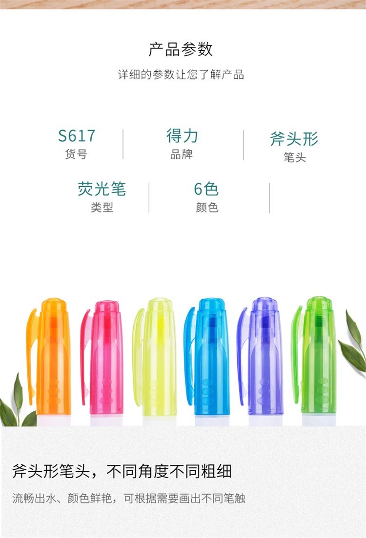 “deli/得力”S617 荧光笔 单支装(橙色倾斜头标记笔韩国糖果色重点记号笔固体银光笔闪 海洋·0418)