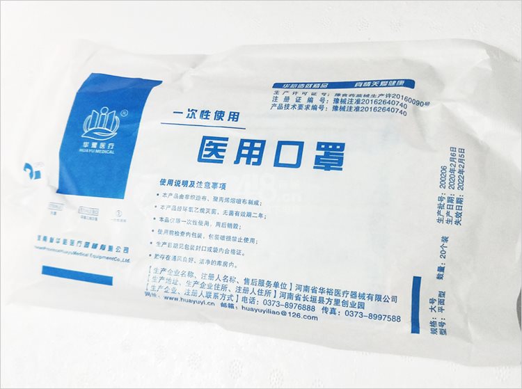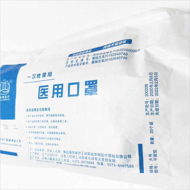 “HUAYU MEDICAL/华豫医疗”平面型 医用口罩 单个装(大号一次性使用20个/包疫情防控用品 海洋·0418)