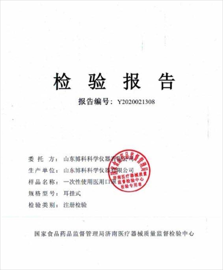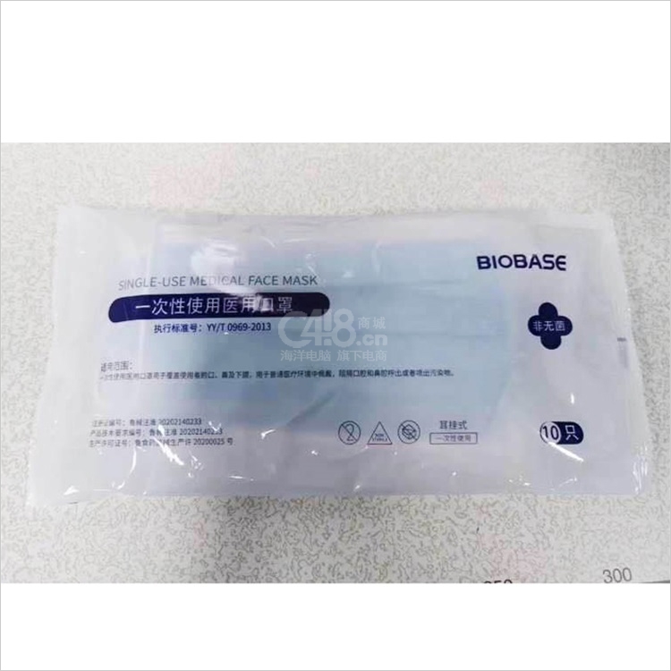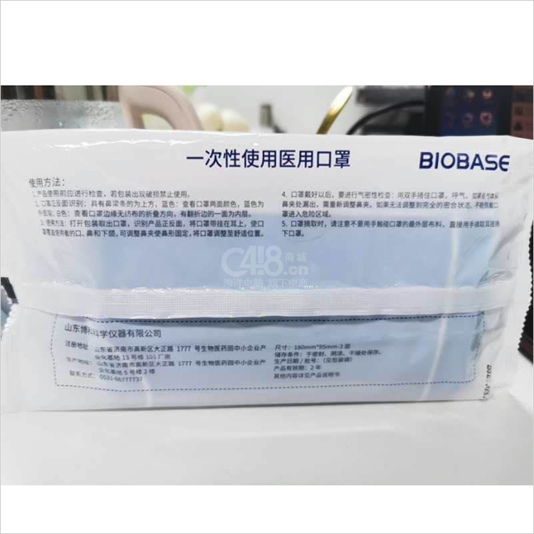 “BIOBASE/博科”耳挂式 一次性使用医用口罩 单个装(180mm*95mm三层疫情防控用品)