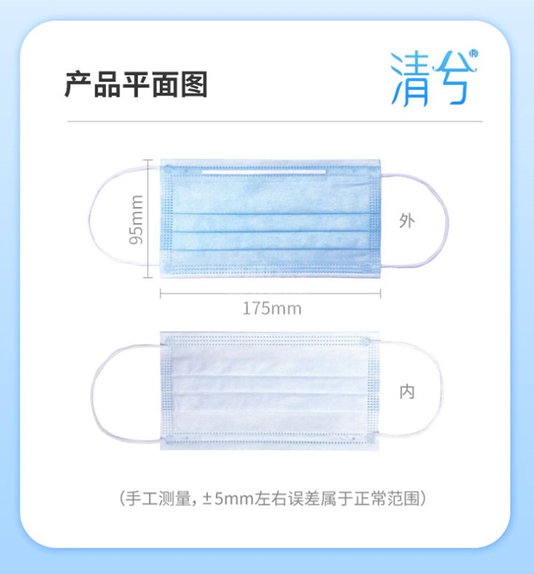 “清兮”平面型 医用外科口罩 10片/袋装(一次性无菌17.5cm*9.5cm疫情防控用品)