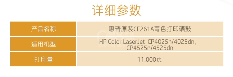 “HP/惠普”648A CE261A 打印硒鼓 单个装(青色原装适用LaserJet CP4025/CP4525)
