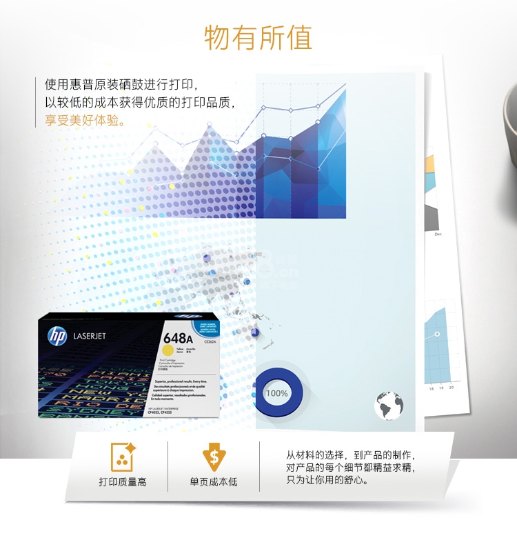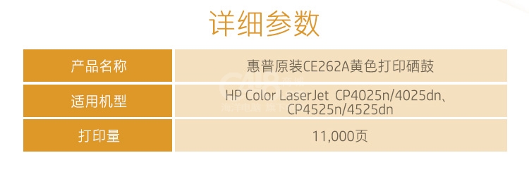 “HP/惠普”648A CE262A 打印硒鼓 单个装(黄色原装适用LaserJet CP4025 CP4525)