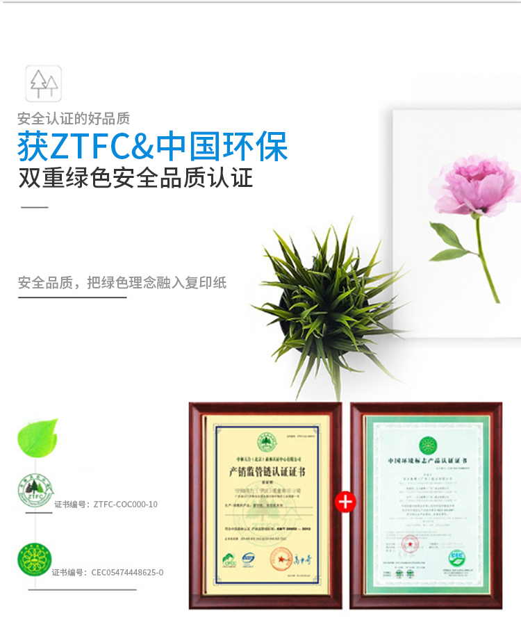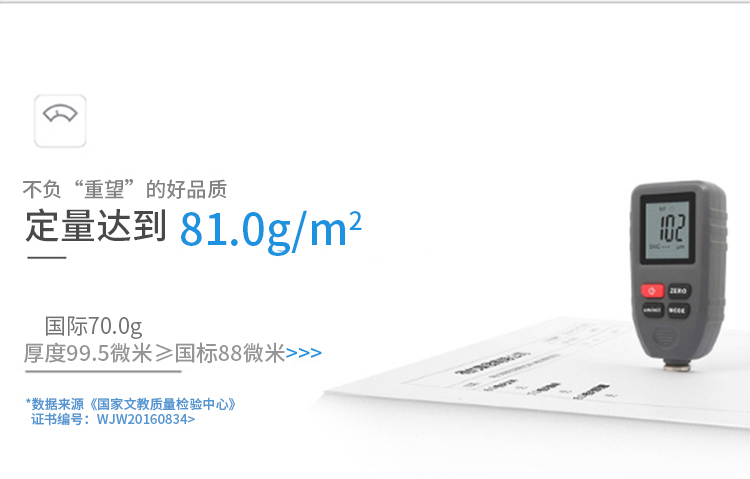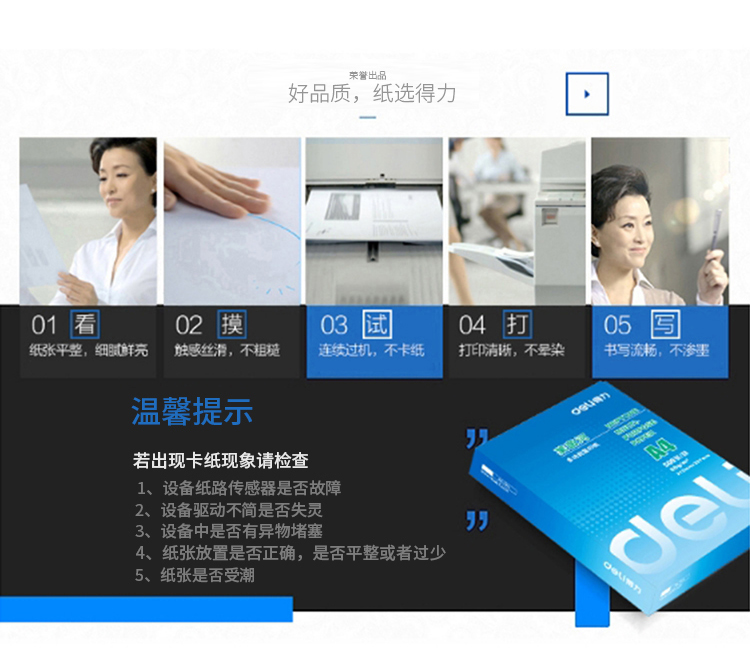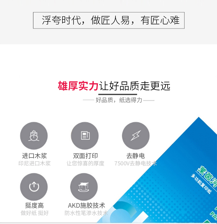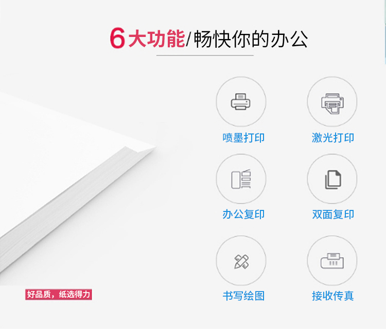 其它特征1、白色复印纸,打印流畅不卡纸;2、80g;3、A4,8包装