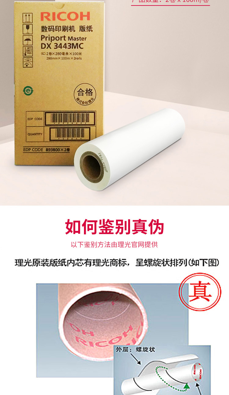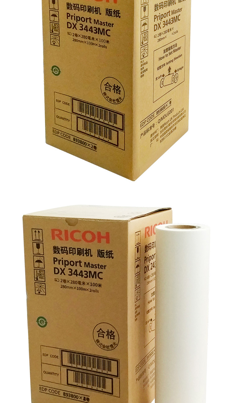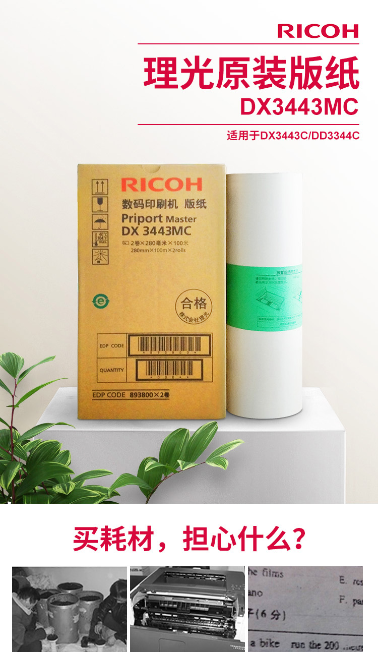 “RICOH/理光”DX 3443MC 版纸 1盒装(100m/卷适用于DX3443C/DD3344C 2卷/盒)