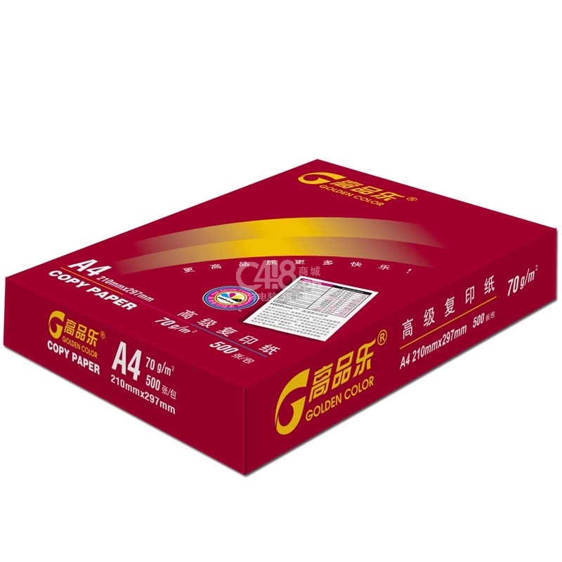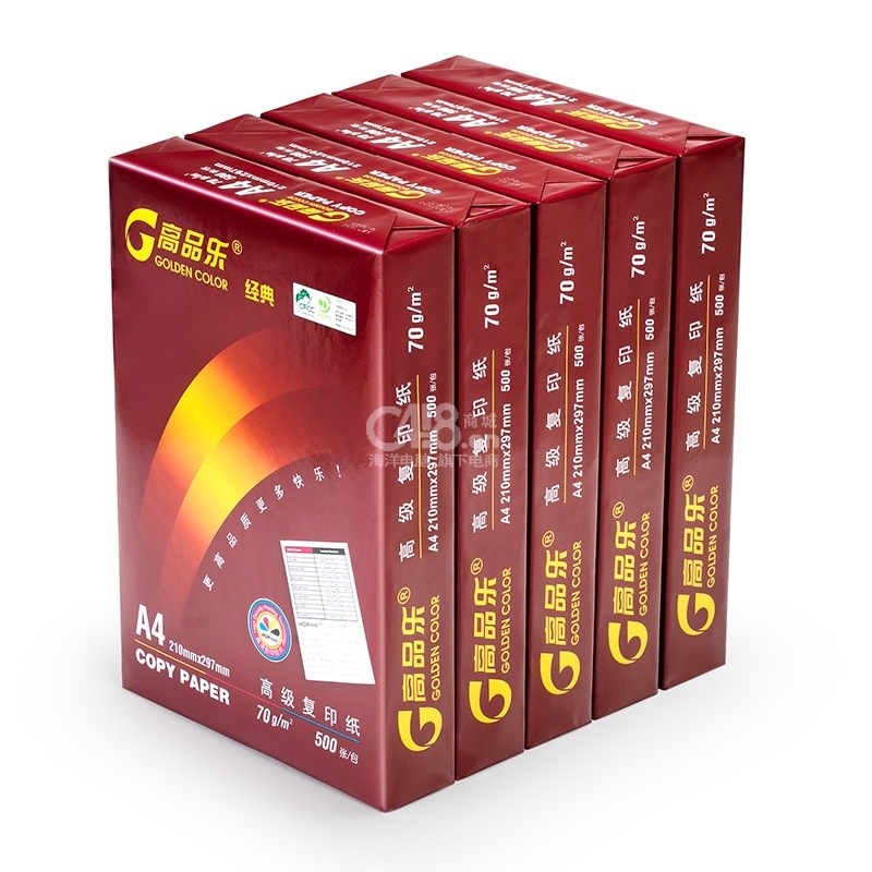 “GOLDEN COLOR/高品乐”70g A4 500张/包 高级复印纸 1箱装(亚太森博经典电脑打印纸)