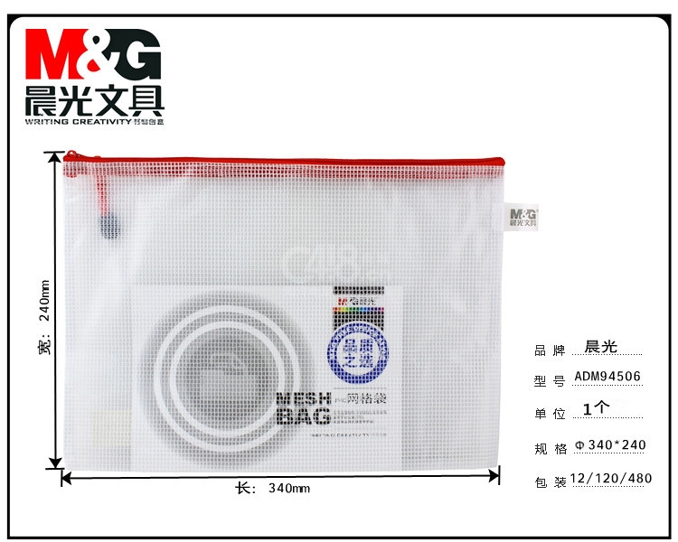 “M&G/晨光”ADM94506 拉链袋 单个装(颜色随机A4规格网格资料袋学生透明袋)