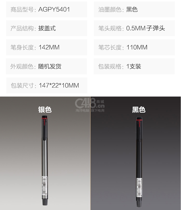 “M&G/晨光”AGPY5301 中性笔 签字水性笔学生匠品系列黑色 0.5mm 笔杆颜色随机 按动款 单支装(海洋电脑 0418商城)