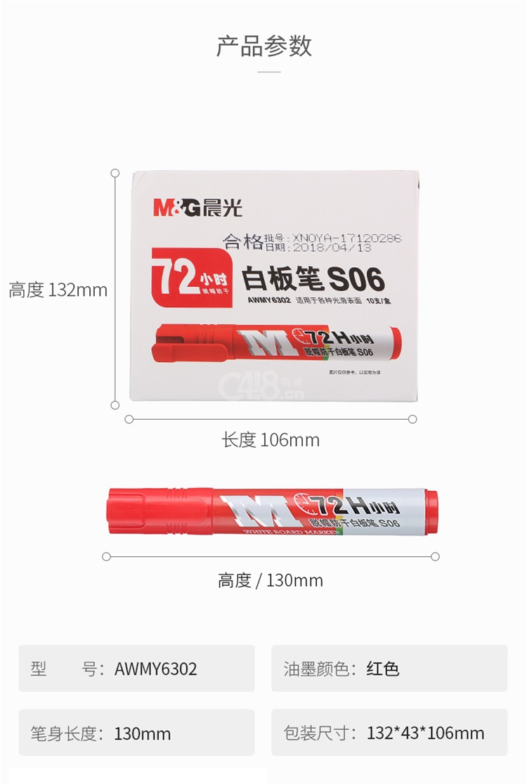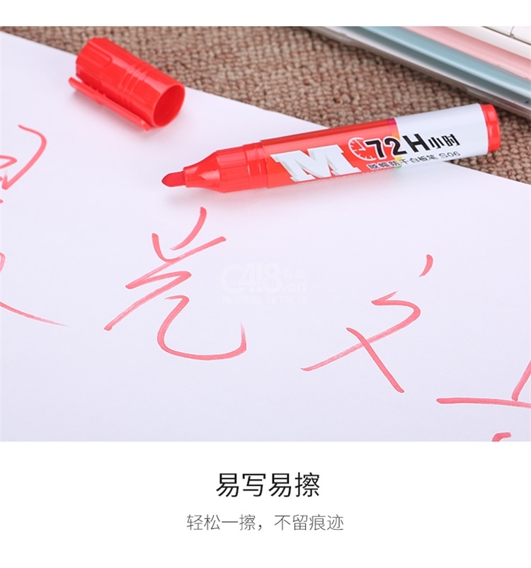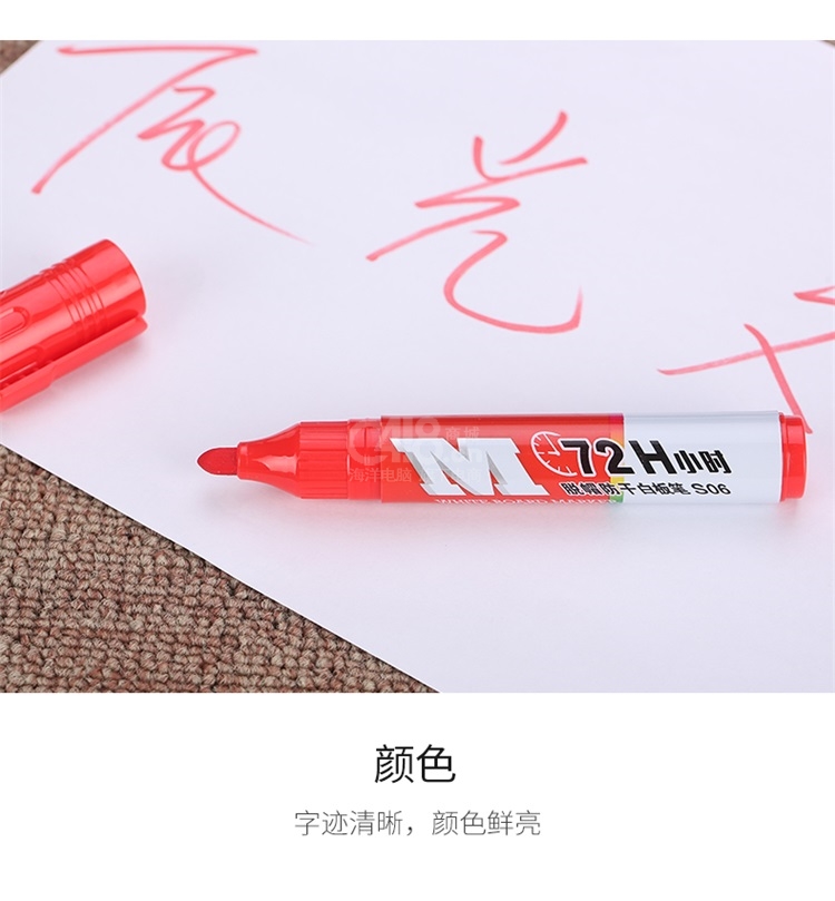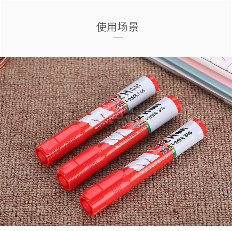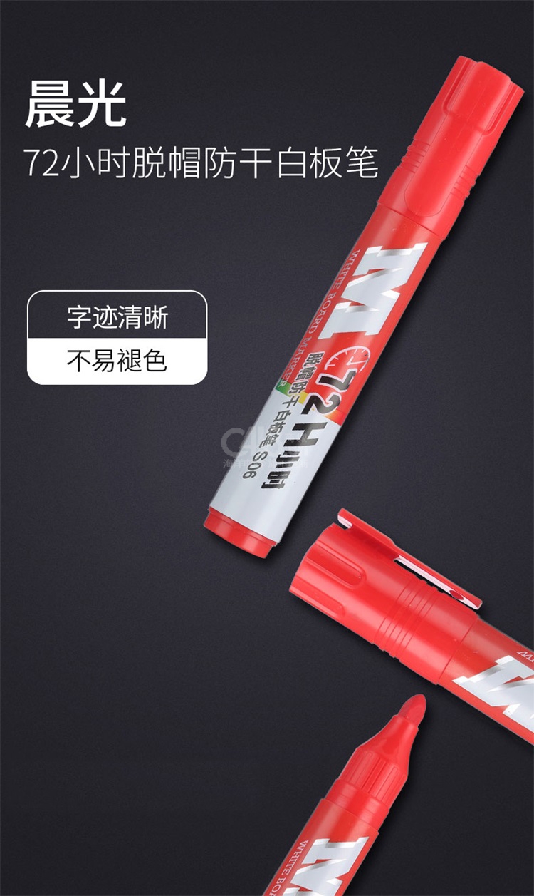 晨光(M&G)蓝色72小时脱帽防干白板笔S06套装易擦办公会议笔