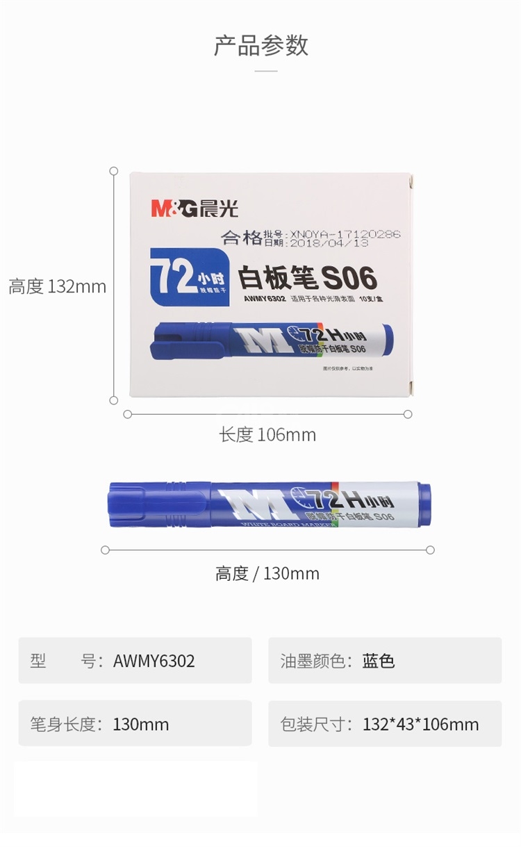 “M&G/晨光”AWMY6302 白板笔(蓝色 72小时 脱帽防干S06)单支装(海洋·0418)