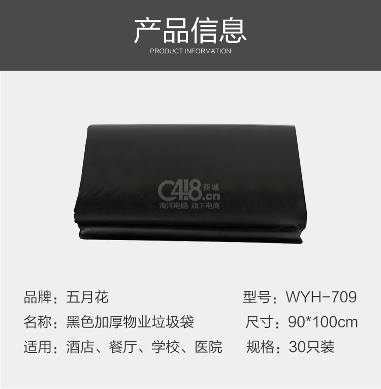 “May Flower/五月花”WYH-709 垃圾袋 30只/捆装(黑色加厚物业大号90*100)