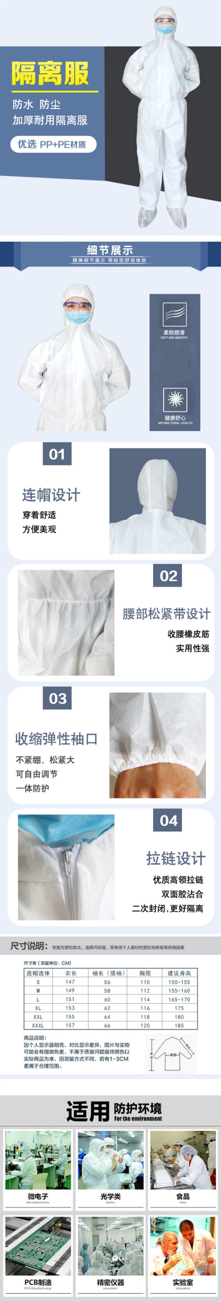 “地宁”XXXL 隔离服 单套装(身高185cm防护服连体衣疫情防控用品)