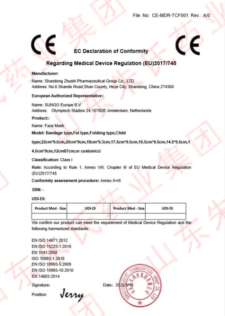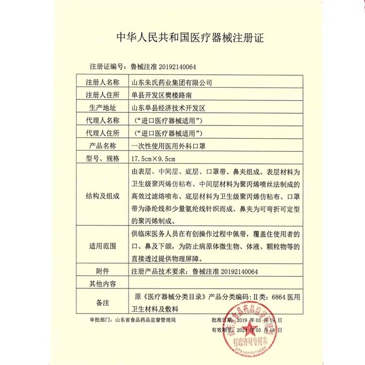 | 医疗器械注册证编号或者备案凭证编号 | 鲁械注准20192140064 |