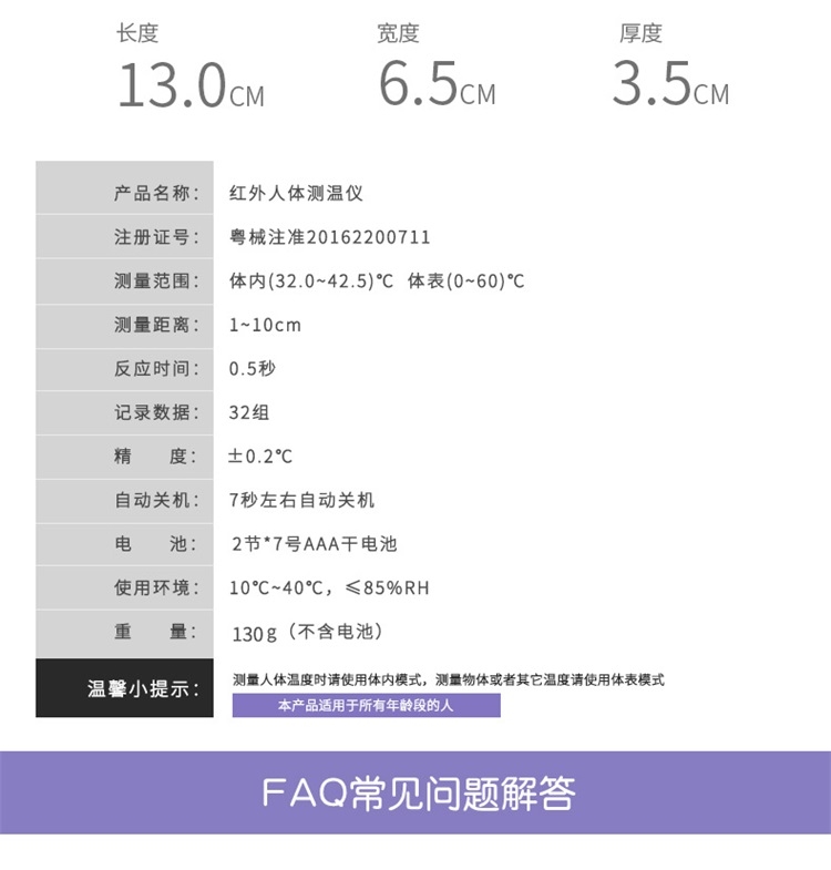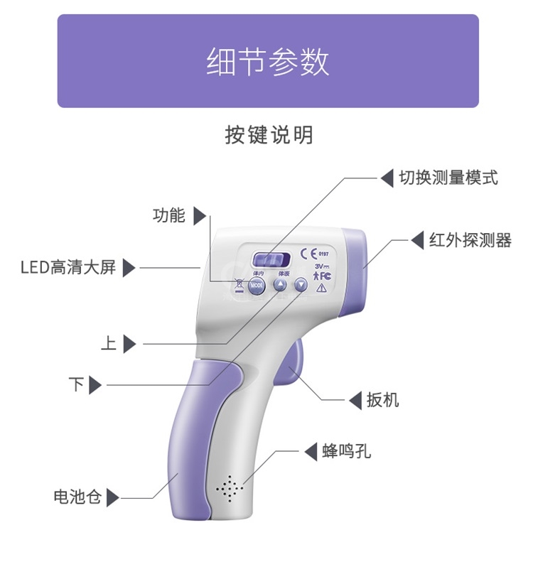 | 适用范围 | 通过测量额头的热辐射来显示被测对象的体温 |