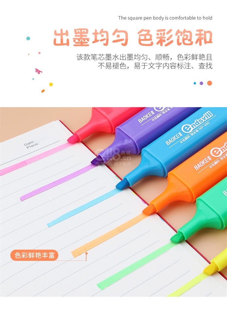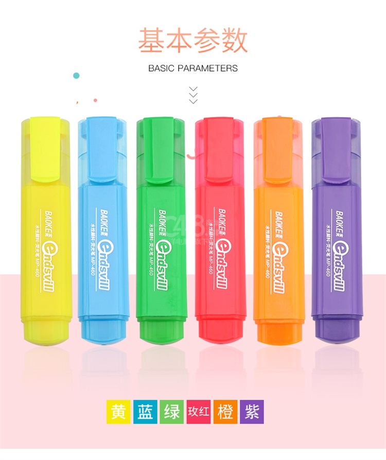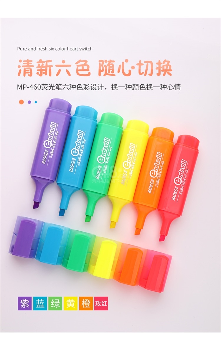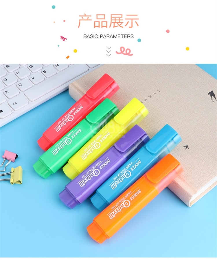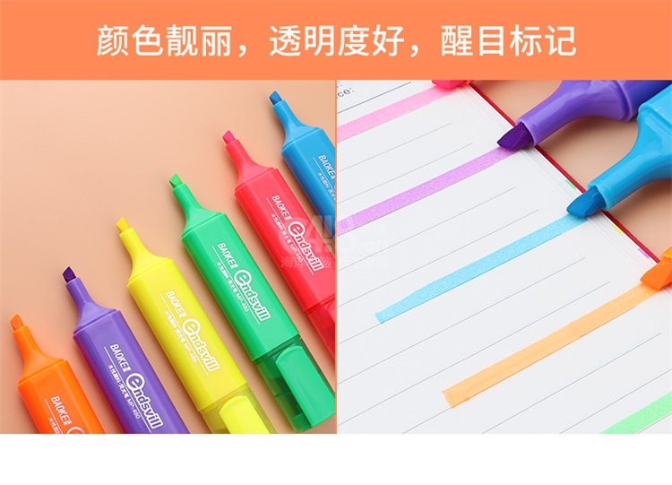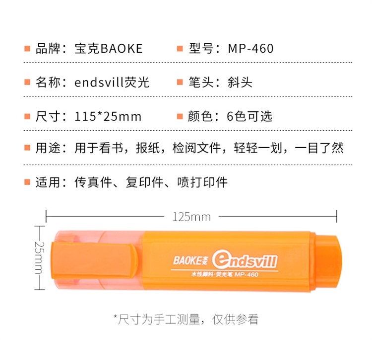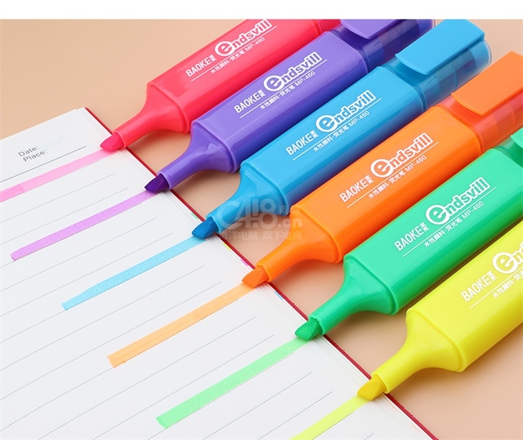 “BAOKE/宝克”MP-460 荧光笔 单支装(蓝色重点标记笔水性颜料记号笔学生办公用10支/盒)
