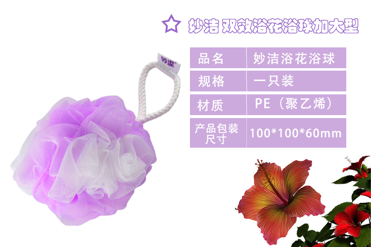 “MIAOJIE/妙洁(妙潔)”MHBABBC 双效浴花 单个装(加大型浴球易起泡不伤手6127)