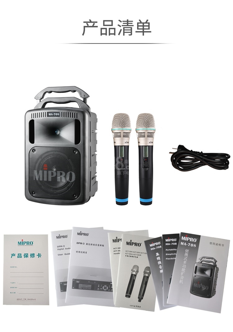 主机+标配无线双话筒+遥控器+充电器+产品说明书+售后保修卡