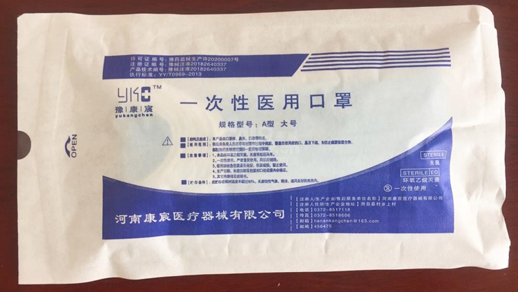 “YKC/豫康宸”A型 大号 口罩 10个/包装(蓝色一次性医用)