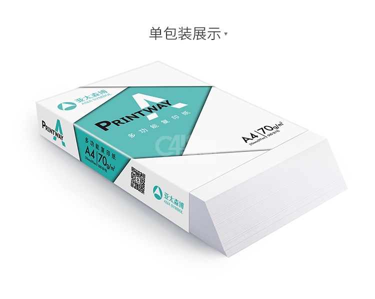 “Asia Symbol/亚太森博”Print Away A4 70g 500张/包 多功能复印纸 8包/箱装(打印纸)