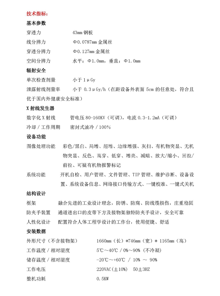类型 通道式X射线安检机