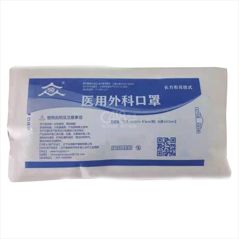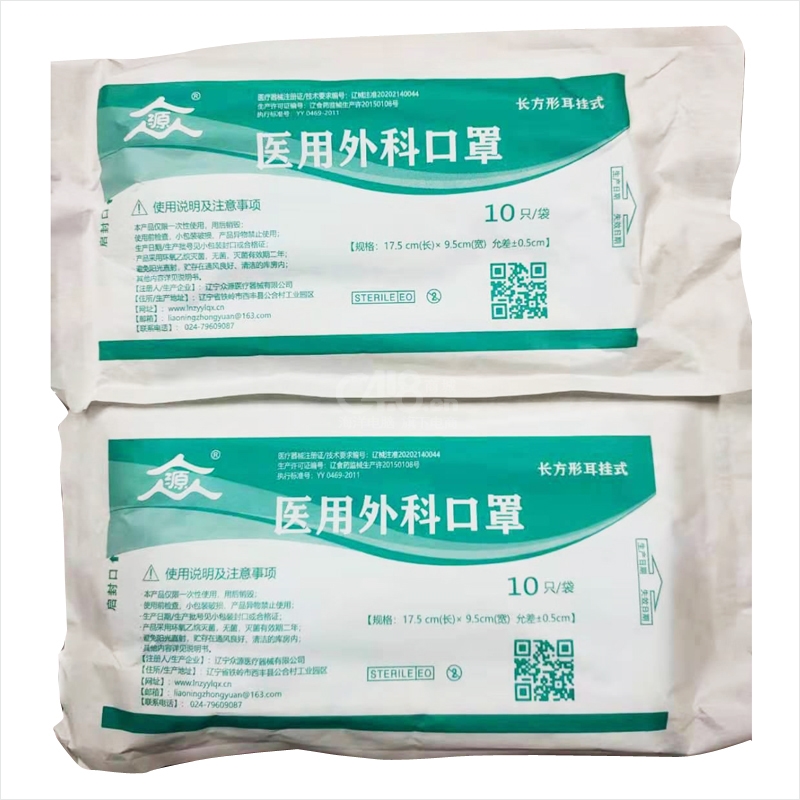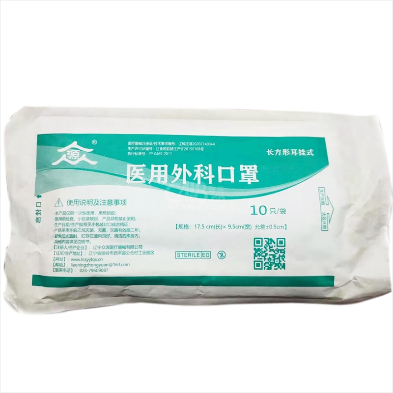 “众源”长方形耳挂式 口罩 10只/袋装(蓝色医用外科17.5cm*9.5cm防疫用品)