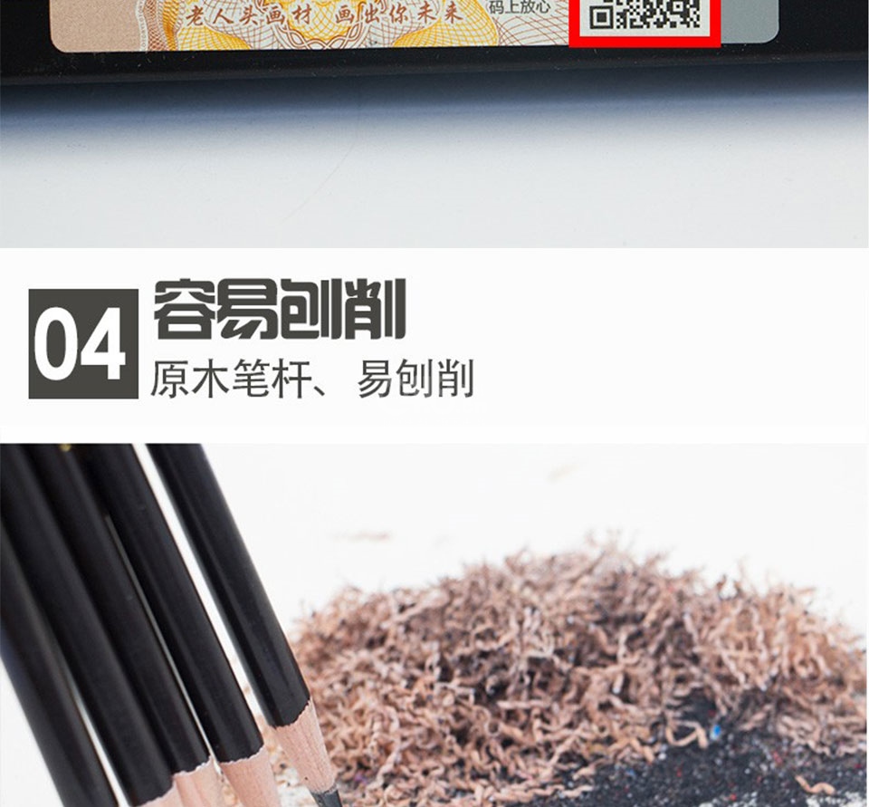 “LOTORY/老人头”6816 3B 绘画铅笔 单支装(长178mm圆形笔杆美术速写绘画专用12支/盒)