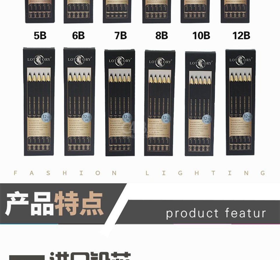 “LOTORY/老人头”6816 5B 绘画铅笔 单支装(长178mm圆形笔杆美术速写绘画专用12支/盒)