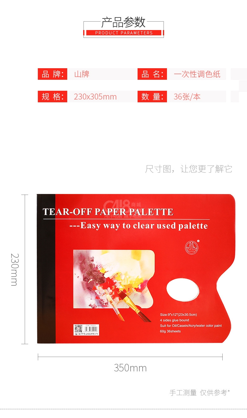 “山(山牌)”XS0501 一次性调色纸 36页/本装(23*30.5cm 60g可揭式)