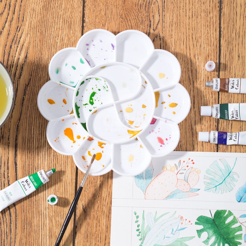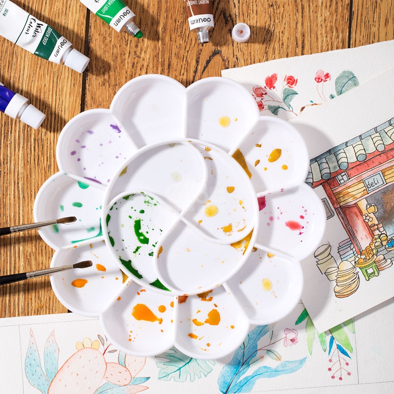 “deli/得力”14格 大号调色碟 单个装(优质塑料梅花型水粉颜料调色盘调色盒调色板)
