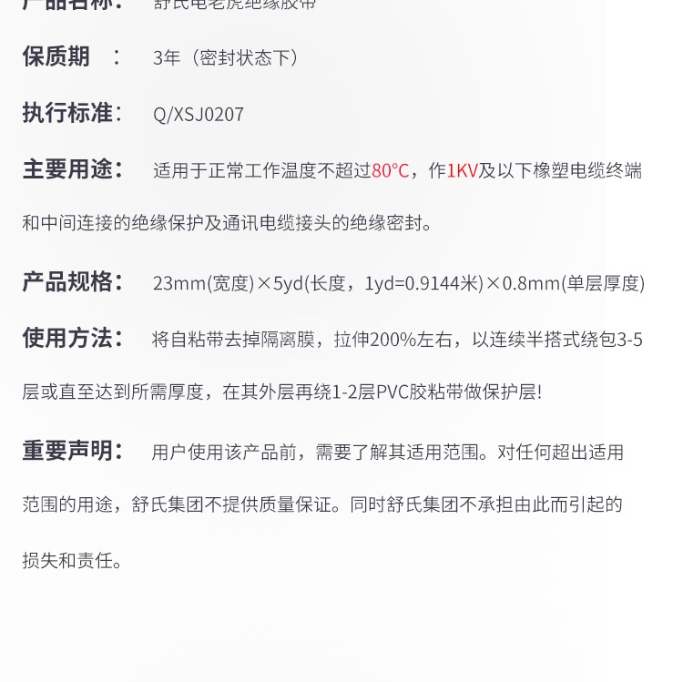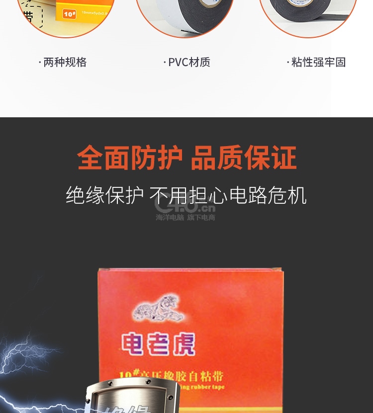 “电老虎”20# 高压橡胶自粘带 单卷装(20号23mm*5yd*0.8mm)