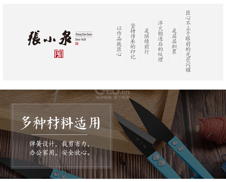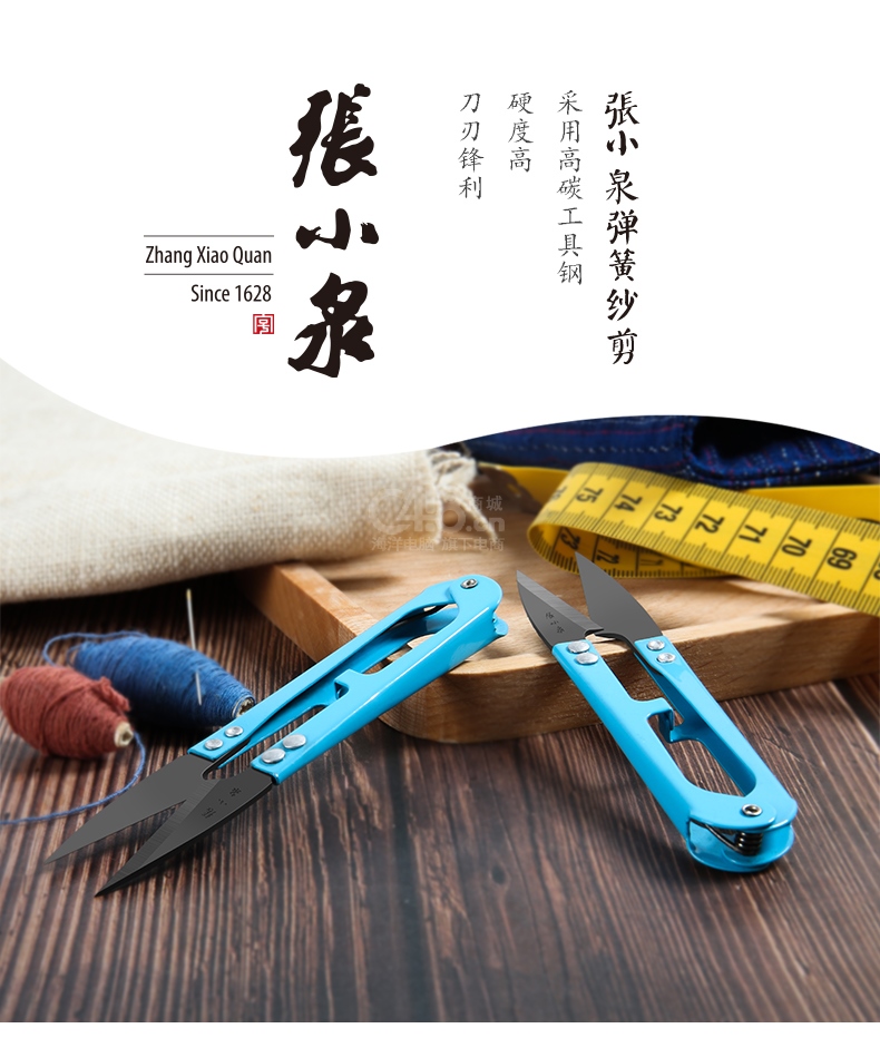 “Zhangxiaoquan/张小泉”TB-448S 弹簧纱剪 单把装(颜色随机U型服装裁缝纫布小号剪子)