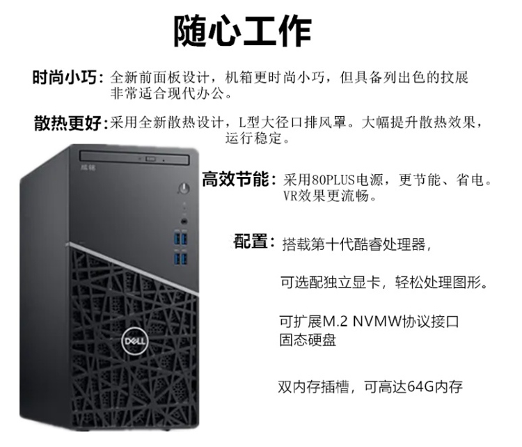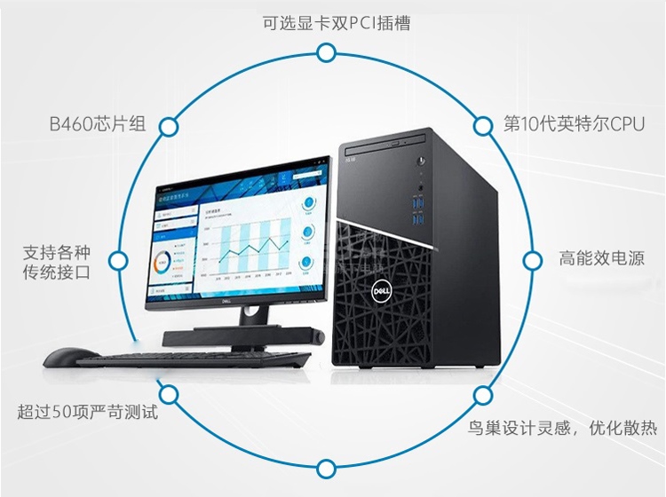 “戴尔”成铭3991 商用台式机 单套装(I5-10500 4G 1TB+128G固态集成WIN10 HOME版21.5显示器)