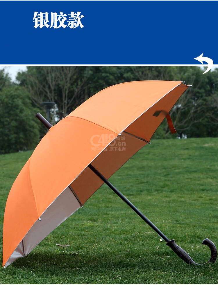 “羽芒”JDYM(ZY11) 雨伞 单把装(10K银胶加大弯柄加大商务双人防晒高尔夫伞)