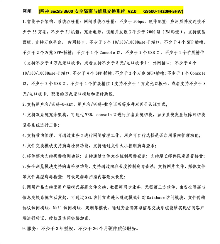 “SECWORLD/网神”G9500-TH20M-SHW 安全隔离与信息交换系统 单套装(网神SecSIS 3600 V2.0网闸)
