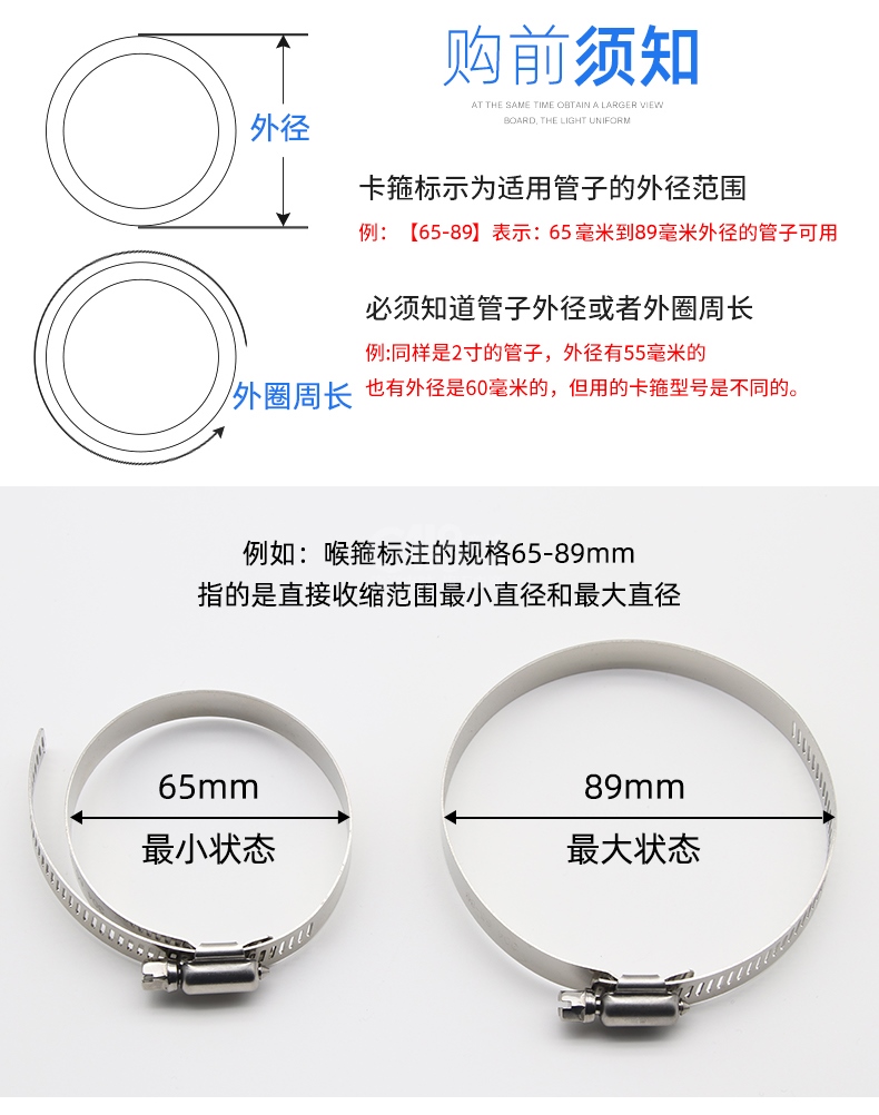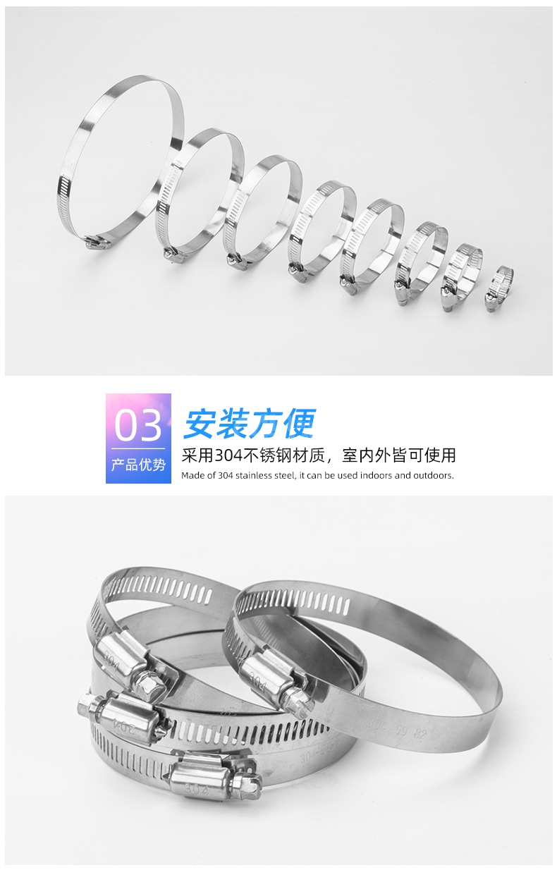 “永博不锈钢”6-12mm 喉箍 单个装(304不锈钢箍管卡管夹抱箍管箍活箍小美)
