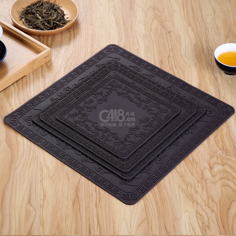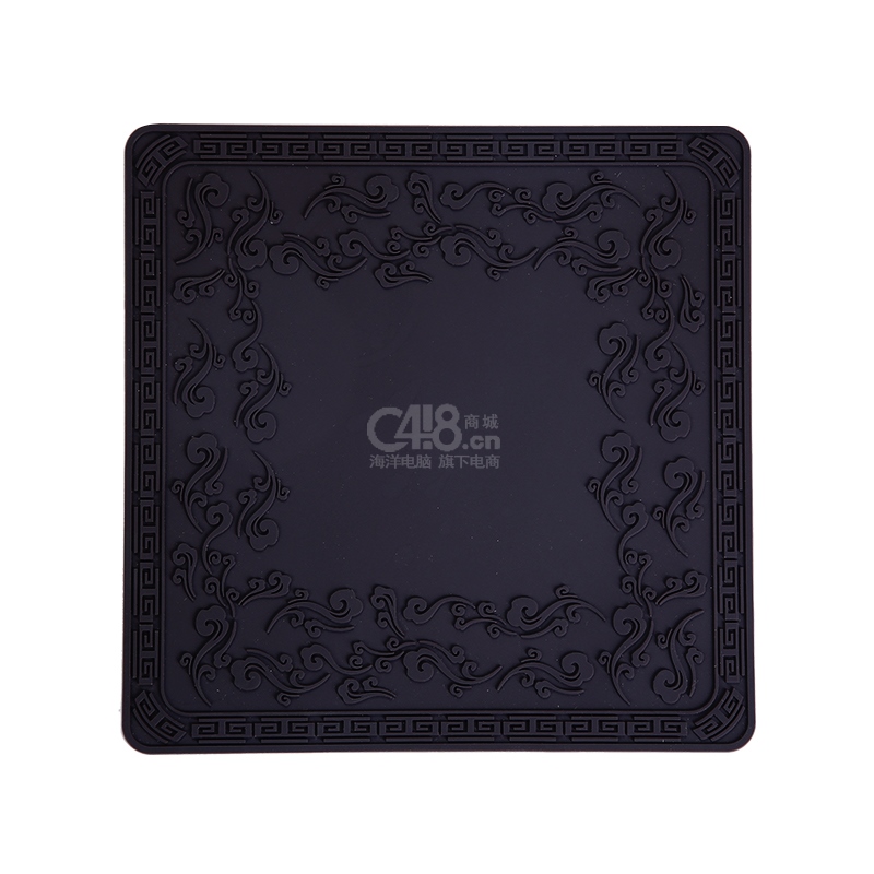 “麦鸿狄”正方形 祥云杯垫 单个装(深咖啡中式硅胶碗垫防滑隔热垫烟缸垫盘垫茶杯垫)