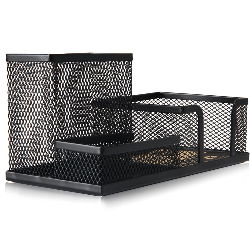 “deli/得力”三格款 多功能办公座 单个装(黑色金属网纹笔筒多功能桌面收纳)